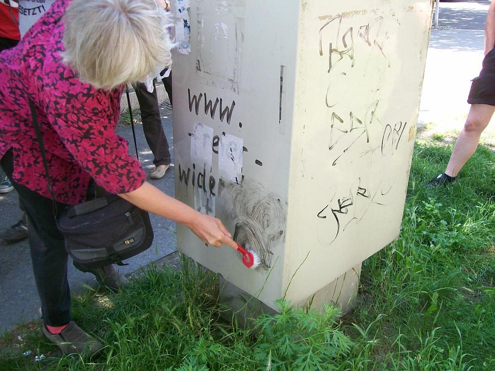 Der Zweite wäre, dass die Mitmenschen die Hass-Schmierereien nicht dulden und selbst aktiv werden, indem sie diese auch entfernen. Also nicht warten, bis - und dass - es andere tun ..