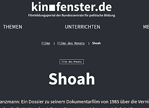 Unter dem Label KINOFENSTER.DE weist die Bundeszentrale für politische Bildung (BPB) auf Arbeitsmöglichkeiten mit Filmen hin. Diesmal steht der Film SHOA im Vordergrund.